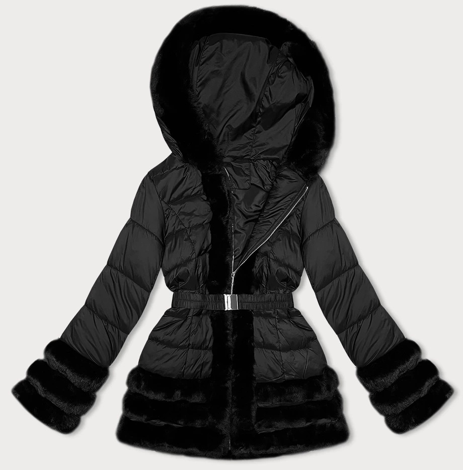 Čierna prešívaná dámska prechodná bunda s kožušinou J Style (11Z8087) odstíny černé M (38)