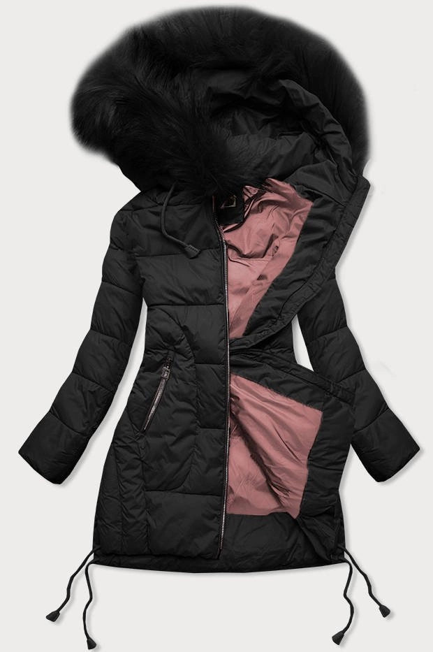Čierna prešívaná dámska zimná bunda s kapucňou (7690) odstíny černé M (38)