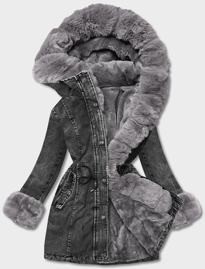 Čierna/sivá dámska džínsová bunda s kožušinovou podšívkou (B8068-109) odstíny černé L (40)