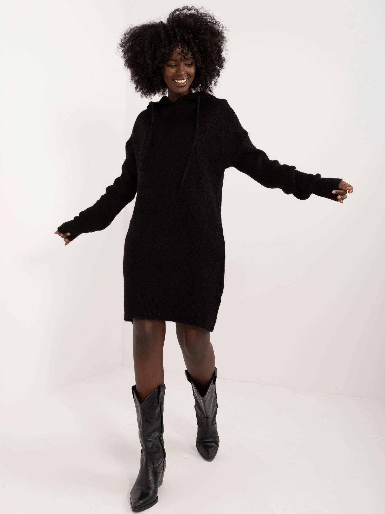 Pri výbere veľkosti venujte pozornosť nižšie uvedenej veľkostnej tabuľke. Veľkosti nezodpovedajú oblečeniu, ktoré bežne nosíte. Voľné mini šaty Tieto šaty majú kapucňu, dlhé rukávy a dĺžku nad kolená. Materiál: 80 % akryl, 15 % polyester, 5 % elit. Šaty sú vhodné pre ženy, ktoré nosia veľkosť S - L.