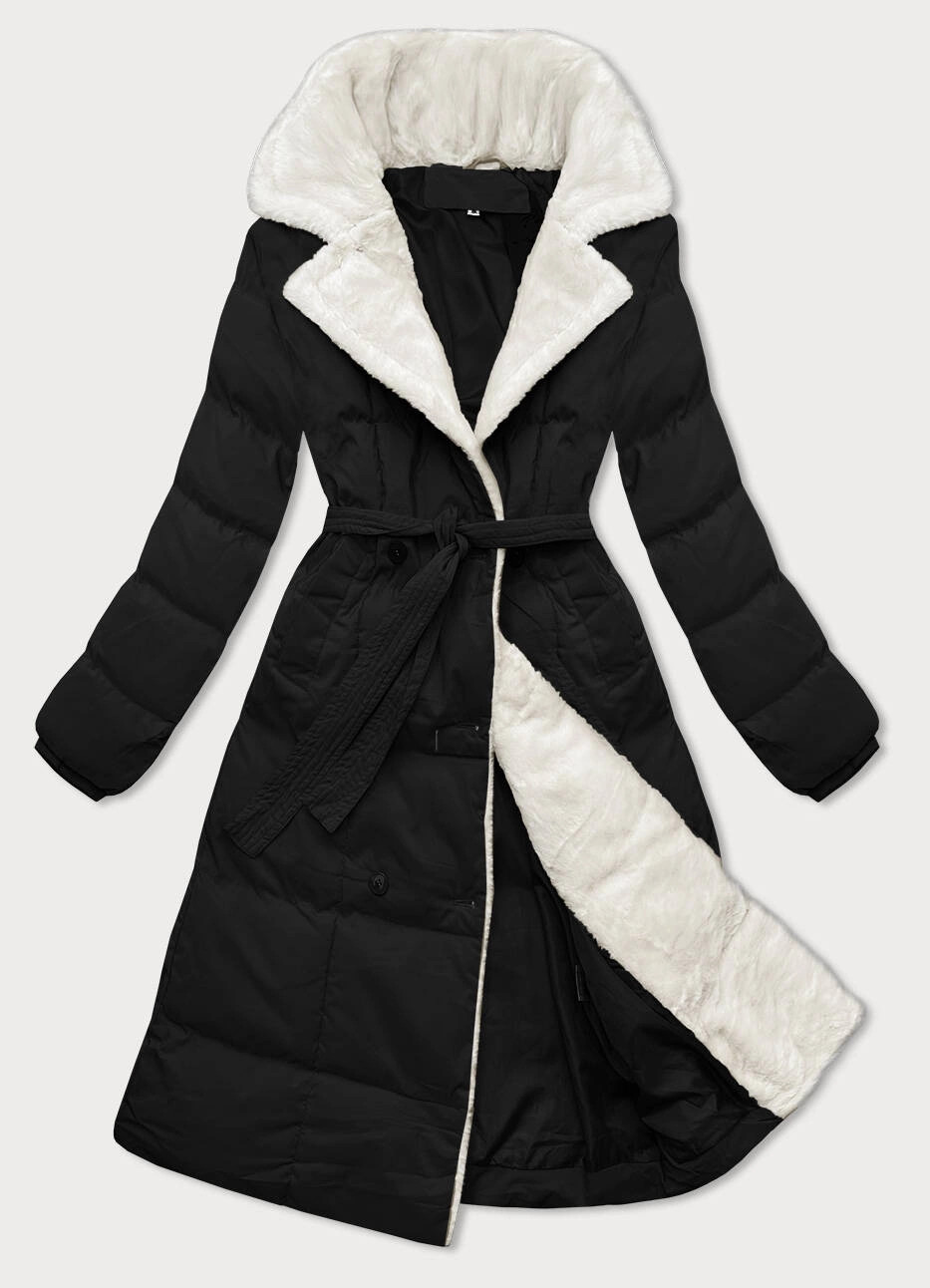 Pri výbere veľkosti venujte pozornosť nižšie uvedenej veľkostnej tabuľke. Veľkosti nezodpovedajú bežne nosenému oblečeniu. Dlhý kabát s opaskom Kabát je mierne vypchatý, zateplený syntetickou páperovou výplňou, má dve vrecká bez zapínania a zapína sa na gombíky. Model má golier. Pozdĺž goliera a gombíkov sa tiahne kožušinový panel. Rukávy sú olemované skrytými šnúrkami. Kabát je dlhý do polovice lýtok. Materiál: 100% polyester.