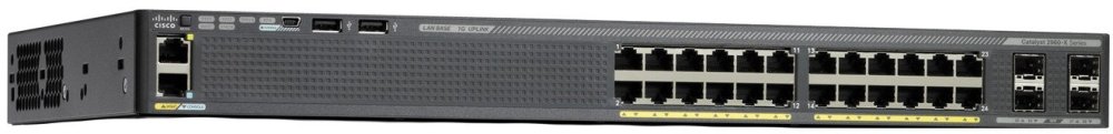 Cisco Cisco Catalyst WS-C2960X-24PSL-RF, 24xGbE + 4x1G SFP, LANBase FeatSet, 370W AC, 1RU, max.12x PoE+ or 24x PoE, stackable, REFURBISHED