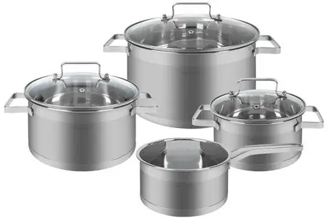 Classbach KTS 4016 Sada hrncov 4 ks / 3x sklenená pokrievka / 1x rajnica / nerezová oceľ (4015067140169)