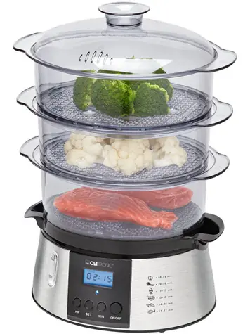 Clatronic DG 3547 nerez / parný hrniec / 700 W / 3 nádoby / viečko / miska na ryžu / časovač (DG 3547)