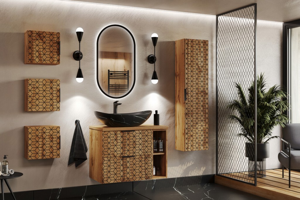 CERSANIT - Skrinka VIRGO 60 sivý dub pod umývadlo na dosku s chrómovými úchytmi S522-022