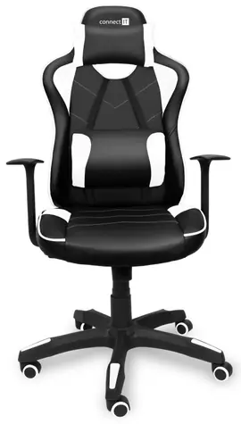 Connect IT LeMans Pre biela / herné kreslo / nastaviteľné / koža / pojazdové kolieska / nosnosť 150 kg
