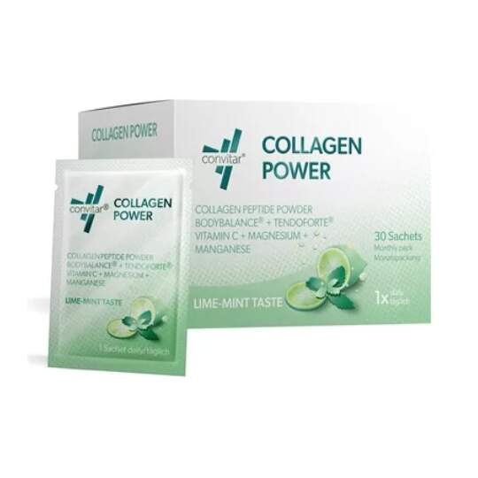 Výživový doplnok CONVITAR® Collagen obsahuje kolagénové peptidy, vitamín C, magnézium a mangán. Horčík prispieva k správnemu fungovaniu svalov. Mangán prispieva k normálnej tvorbe spojivového tkaniva. Vitamín C prispieva k správnej tvorbe kolagénu a k správnej funkcii chrupaviek a kostí.