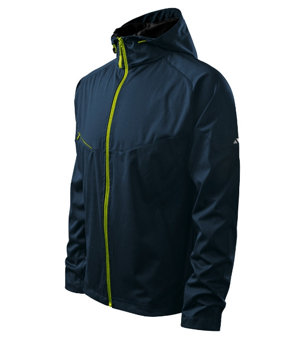 3-vrstvový softshell s membránou plne elastický reverzný špirálový zips kapucňa a spodný lem so sťahovacou šnúrkou elastické sťahovacie šnúrky lemy rukávov nastaviteľné pomocou suchého zipsu vrecká s reverzným špirálovým zipsom náprsné vrecko so skrytým zipsom v delenom šve tvarovaný a mierne predĺžený chrbát kontrastné a reflexné prvky informácie o údržbe softshellového materiálu