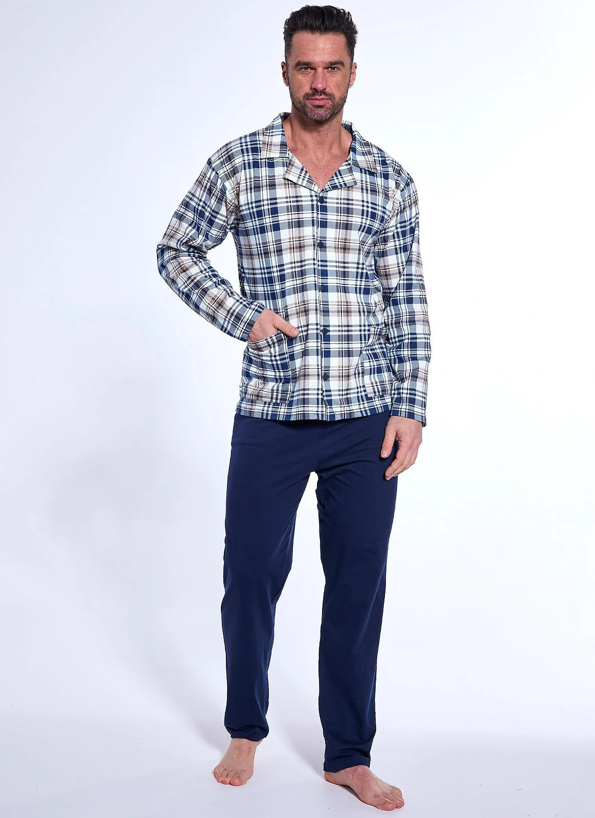 Cornette 114/77 long/r M-2XL pyžamo tmavě modrá - mřížka XXL