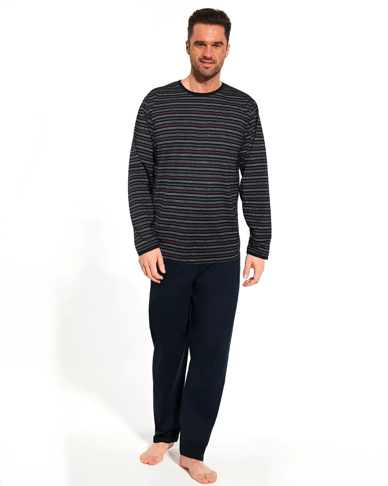 Pánske pyžamo - vysokokvalitná bavlna - pruhované tričko s dlhými rukávmi - okrúhly výstrih - pevné nohavice s dlhými nohavicami - pohodlný elastický pás - balené v krabici Zloženie: tričko 75 % bavlna, 25 % polyester; nohavice 100 % bavlna