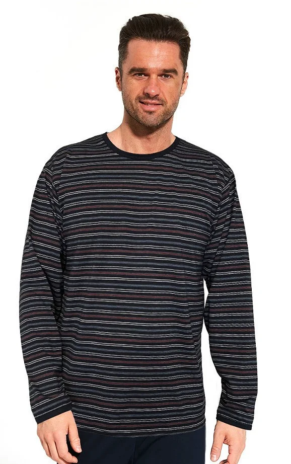 Pánske pyžamo - vysokokvalitná bavlna - pruhované tričko s dlhými rukávmi - okrúhly výstrih - pevné nohavice s dlhými nohavicami - pohodlný elastický pás - balené v krabici Zloženie: tričko 75 % bavlna, 25 % polyester; nohavice 100 % bavlna