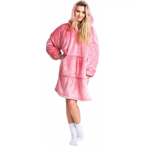 Cozy Noxxiez Ružová - hrejivá televízna mikinová deka s kapucňou pre teenagerov a dospelých