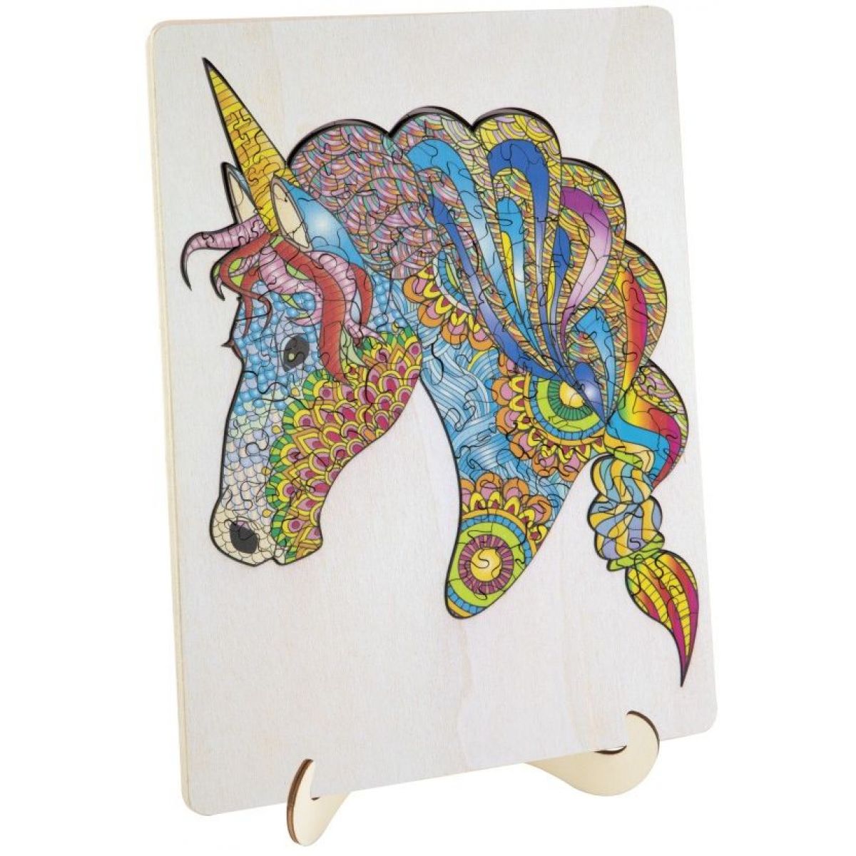 Jednorožec sa stal námetom pre drevený puzzle obrázok, ktorý si deti môžu zostaviť z pripravených dielikov.
