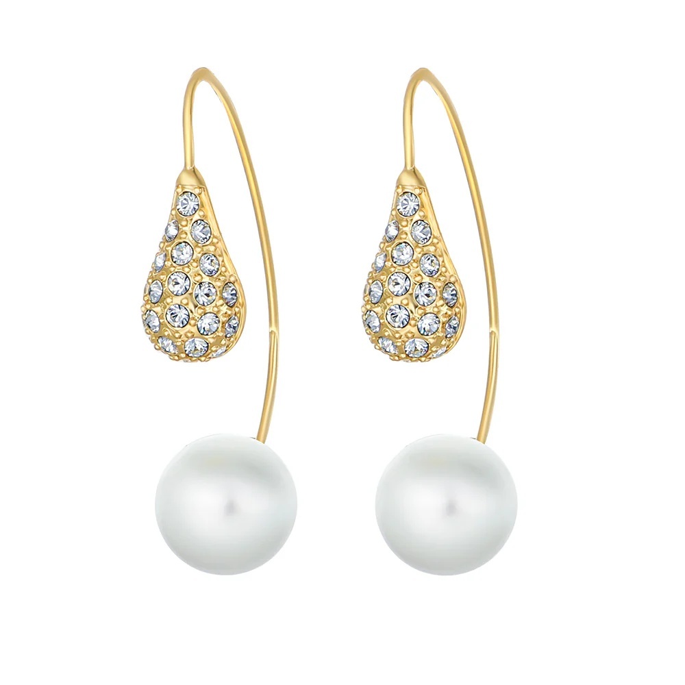 Silver Cat Slušivé pozlátené náušnice so zirkónmi a perlou 2v1 SC502