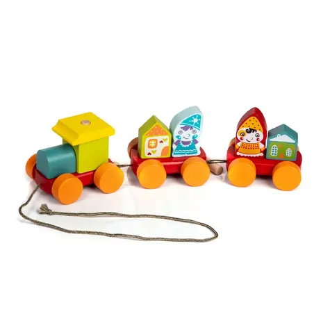 CUBIKA 14002 Ťahací rozprávkový vláčik - drevená skladačka / 10 dielov / od 2 rokov