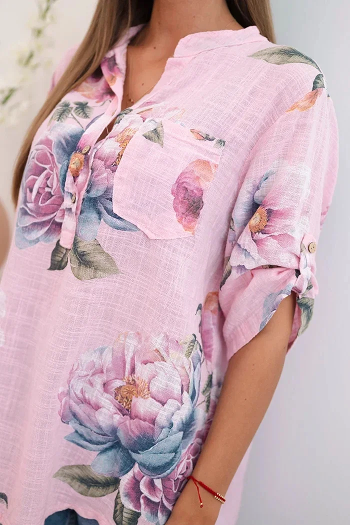 Domov Oblečenie a móda Dámske oblečenie Dámske blúzky a košele Dámska bavlnená blúzka s kvetinovým vzorom candy pink UNI