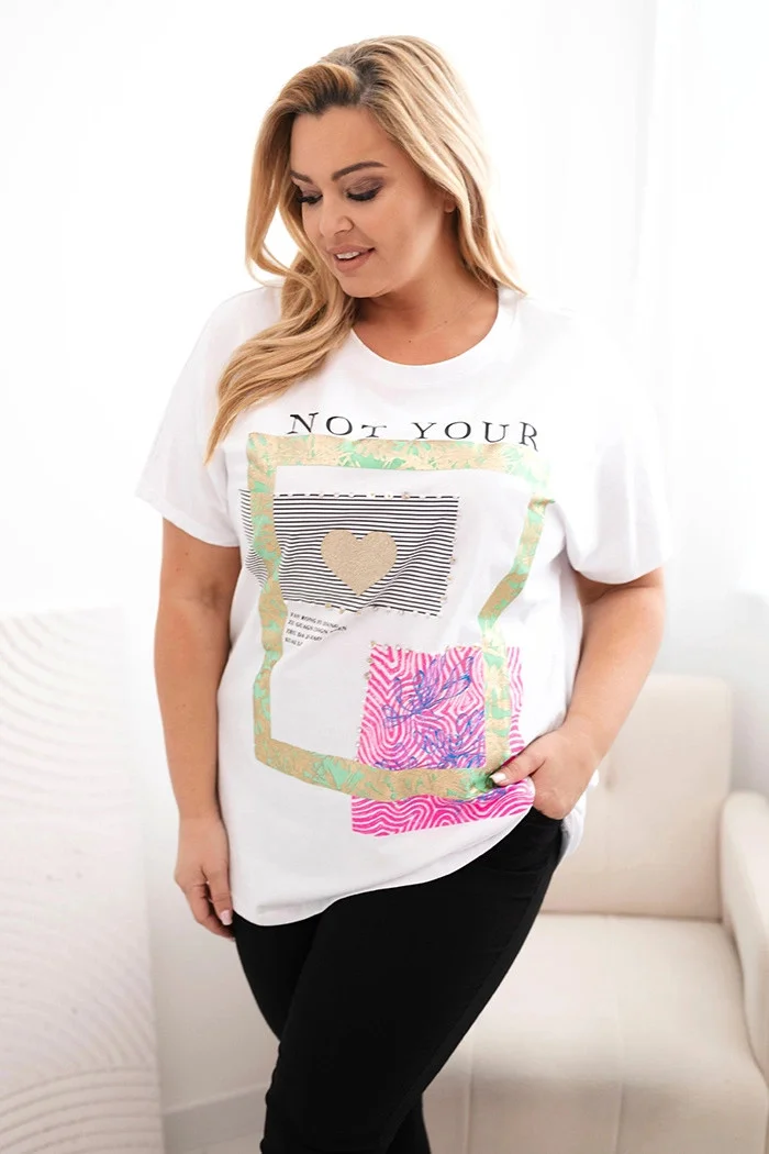 Táto dámska blúzka s krátkymi rukávmi je ideálnou voľbou pre ženy, ktoré ocenia pohodlie a štýl v jednom. Je vyrobená z mäkkej, príjemnej bavlny s prímesou elastanu, dokonale sa prispôsobí postave a zabezpečí pohodlie počas celého dňa. Voľný strih umožňuje voľnosť pohybu a pútavá potlač zlatých srdiečok a farebné detaily jej dodávajú jedinečný charakter. Táto blúzka je vhodná na každý deň, na stretnutie s priateľmi alebo na ležérnejšie príležitosti - stačí ju skombinovať s obľúbenými džínsami alebo legínami. Vďaka módnemu dizajnu a univerzálnemu strihu je skvelým doplnkom každého šatníka. Veľkosť je univerzálna a hodí sa pre dámy vo veľkostiach L, XL, XXL. Vlastnosti výrobku: Strih: voľný, oversize Rukáv: krátky Výstrih: okrúhly Materiál: mäkká bavlna s elastanom Vzor: farebná potlač so zlatým srdcom a nápisom Pohodlný strih umožňujúci voľnosť pohybu Štýl: ležérny, každodenný Vyrobené v Taliansku Zloženie materiálu: materiál: 95 % bavlna, 5 % elastanu Nižšie uvedené rozmery sú merané na plocho +/- 1 cmak chcete zistiť obvod, vynásobte šírku číslom 2 Rozmery: Šírka v podpazuší: 64 cm Celková dĺžka: 76 cm