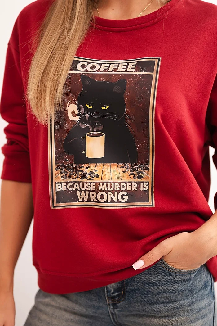 Hľadáte mikinu, v ktorej sa spája pohodlie, zmysel pre humor a módny vzhľad? Táto dámska mikina s potlačou mačky držiacej kávu a nápisom "Because murder is wrong" je ideálnou voľbou pre milovníčky netradičného štýlu. Voľný strih zaručuje voľnosť pohybu a mäkký materiál zaručuje pohodlie počas celého dňa. Je to skvelá voľba na každodenné nosenie, ako aj na chladnejšie večery - ideálna k džínsom, legínam alebo sukni. Originálna potlač dodáva charakter a priťahuje pohľady. Veľkosť je univerzálna a padne dámam vo veľkosti S, M alebo L. Vlastnosti výrobku: Strih: voľný, ležérny Výstrih: okrúhly Rukáv: dlhý, zakončený mäkkou manžetou Materiál: mäkký a príjemný na dotyk Potlač: veselý motív mačky a kávy Štýl: každodenný, s humorom Talianska výroba Zloženie materiálu: materiál: 80% bavlna, 20% polyester Nižšie uvedené rozmery sú merané na plocho +/- 1 cmŠírku vynásobte 2, aby ste získali obvodovú mieru Rozmery mikiny: Šírka v podpazuší: 60 cm Celková dĺžka: 62 cm Dĺžka rukáva od ramena: 43 cm Dĺžka rukáva od ramena: 50 cm