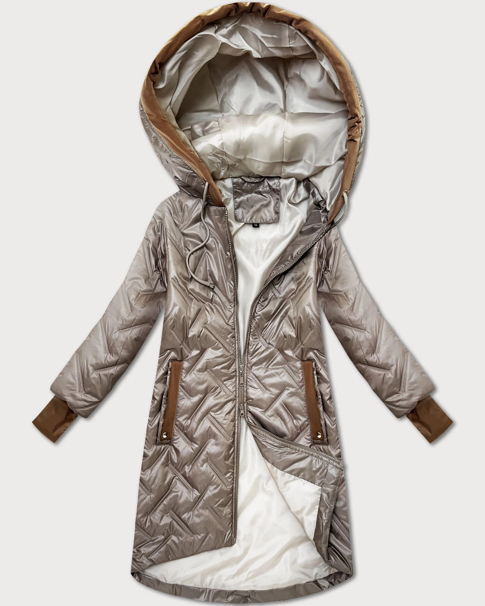 Dámska béžová prešívaná bunda s ozdobnými vložkami (T2-2291#-62) odstíny béžové 56