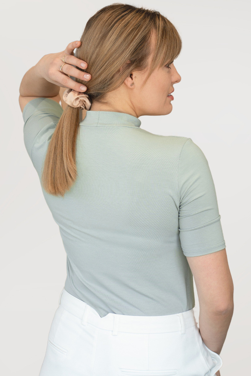 Blúzka LAYLA je kombináciou klasického a moderného štýlu. Polovičný rolák jemne zvýrazňuje krk, čím jej dodáva elegantný charakter, a vďaka krátkym rukávom je blúzka ideálna na každé ročné obdobie. Je vyrobená z mäkkej a priedušnej viskózy s prídavkom elastanu (6 %), čo zaručuje pohodlie a dokonalé prispôsobenie sa postave. Je ideálnou voľbou do kancelárie aj na každý deň - hodí sa k sukni, elegantným nohaviciam alebo džínsom. Zloženie: 94 % viskóza, 6 % elastan