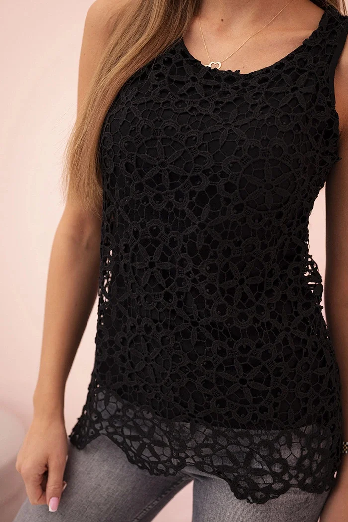 Dámska blúzka s čipkou bez rukávov čierna UNI