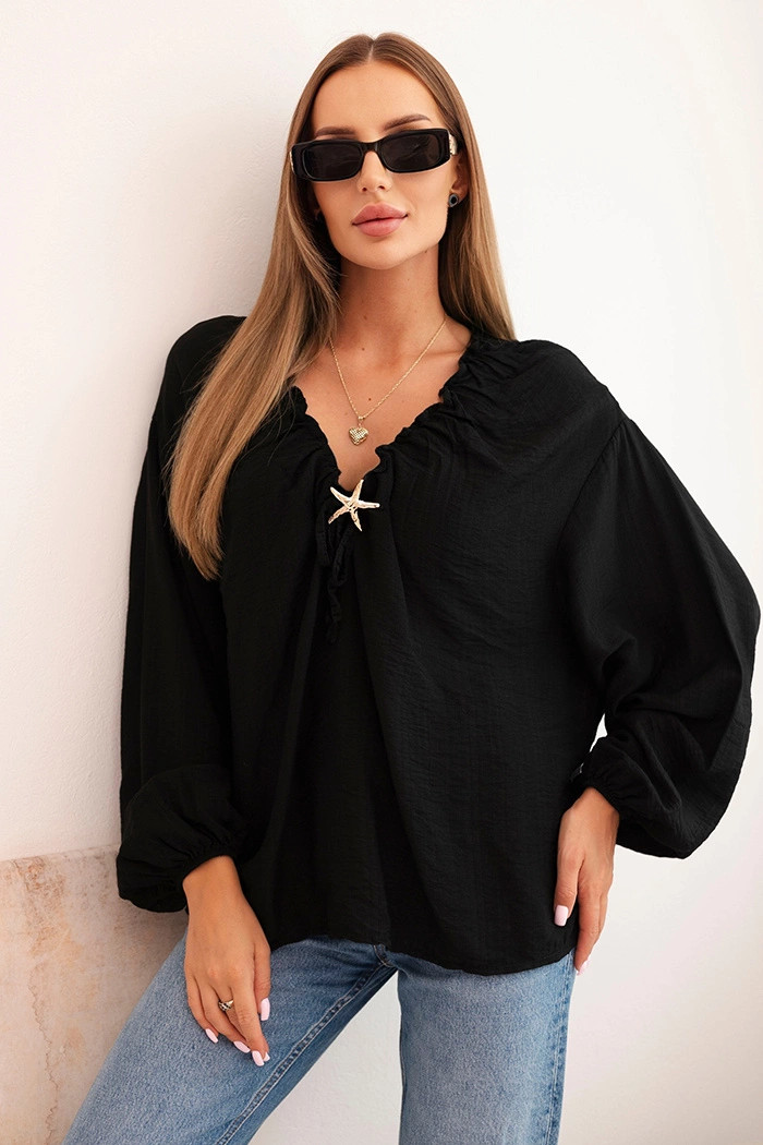 Dámska blúzka s viskózou, výstrihom a ozdobou čierna UNI