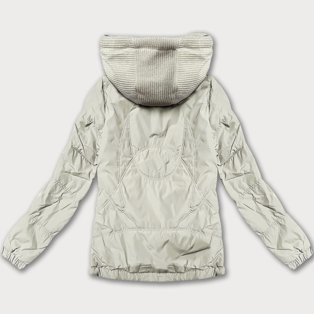 Pri výbere veľkosti venujte pozornosť nižšie uvedenej veľkostnej tabuľke. Veľkosti nezodpovedajú bežne nosenému oblečeniu. Bunda s kapucňou Bunda má voľný strih, je ľahko zateplená syntetickou páperovou výplňou, má dve vrecká bez zapínania a zapína sa na zips a panel s karabínkami. Model má kapucňu, ktorú možno odopnúť, spolu s panelom vedúcim pozdĺž zipsu. V spodnej časti modelu sú elastické šnúrky. Bunda má dĺžku po boky. Zloženie.