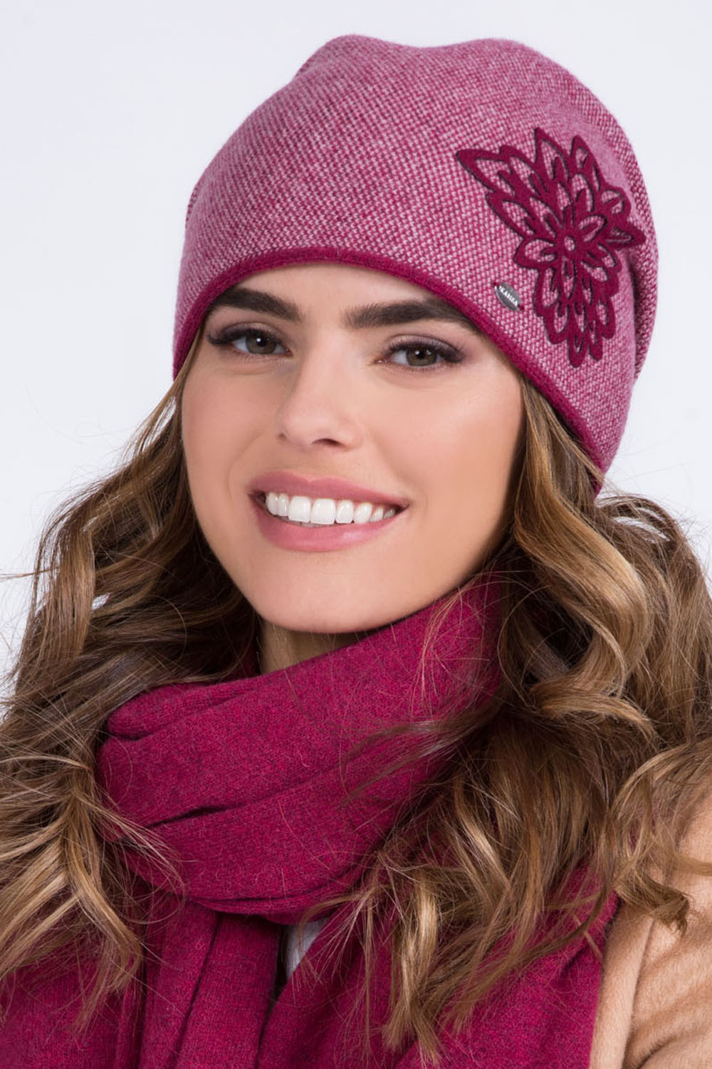 DELTA je dámska čiapka s mimoriadne výraznou tvárou. - klobúk, ktorý dokonale prilieha k hlave - vyrobená z teplej vlnenej priadze - predná časť zdobená kvetinovou aplikáciou - lemovaná spodná časť - vzor rybej kosti - dve záložky vzadu - dvojvrstvový vzor - ideálna na chladné dni Polyamid 20% 80% vlna