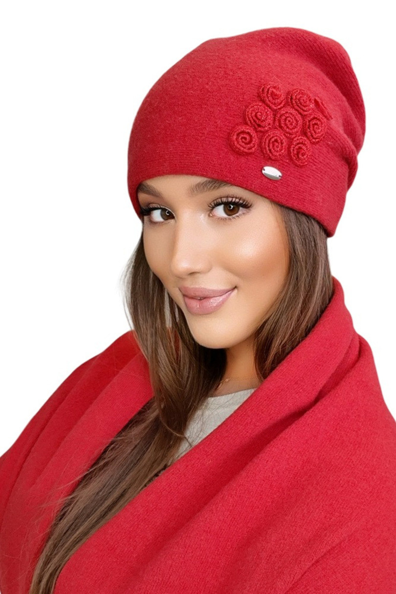 Čiapka je vyrobená z kvalitnej, na dotyk príjemnej vlnenej priadze . Zadná časť čiapky je prešitá stehmi, vďaka ktorým výrobok veľmi pekne sedí na hlave. Klasický tvar je obohatený o ozdobné aplikácie v podobe farebne zladených "slimákov" . LUNA je elegantný, starostlivo vyrobený návrh na jesenno-zimné obdobie. Zloženie: 80% VLNA, 20% POLYAMID