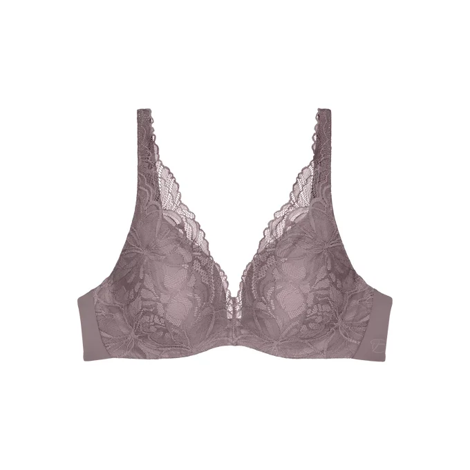 Táto podprsenka s kosticami má hlboký výstrih, elastické kostice a košíčky s takmer neviditeľnými okrajmi. Špeciálne navrhnuté košíčky nadvihujú a zhromažďujú poprsie smerom k stredu a centralizujú ho. Integrované vypchávky upravujú nadvihnutie poprsia v závislosti od veľkosti poprsia - čím menšie poprsie, tým vyššie nadvihnutie a naopak. Je to podprsenka, na ktorú sa ženy môžu spoľahnúť bez toho, aby ju cítili. Vyrobená z jemnej čipky a krémovo jemných mikrovlákien, ktoré sú čiastočne recyklované. Podprsenka s kosticami a hlbokým výstrihom Elastické a ľahké kostice Košíčky s neviditeľnými penovými okrajmi Integrované vypchávky upravujú centralizáciu a nadvihnutie v závislosti od veľkosti poprsia Úprava HeiQ Smart Temp na mikrovlákne a vnútorných košíčkoch poskytuje chladivý a príjemný pocit na pokožke Kombinácia hladkej čipky a mäkkého mikrovlákna so zamatovým pocitom a vyrazeným logom značky. 51 % polyamid, 35 % polyester, 14 % elastan.