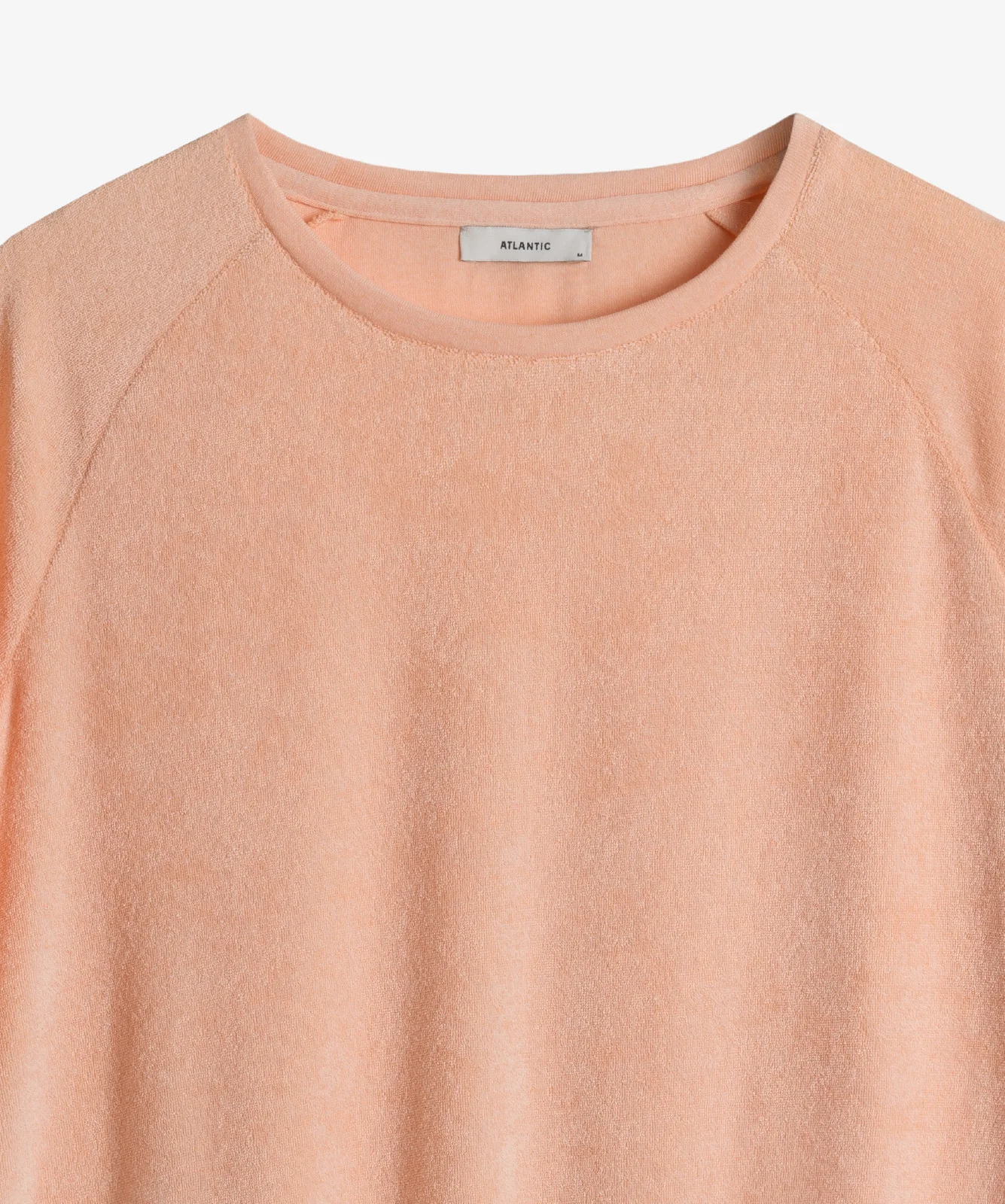 Dámska froté súprava, módna kolekcia - domáce oblečenieNaša súprava obsahuje tričko a šortky v jemnom broskyňovom odtieni. Voľné tričko má krátke rukávy a okrúhly výstrih, zatiaľ čo šortky majú dve pohodlné bočné vrecká a vnútornú gumu v páse, ktorá netlačí. Súprava, ktorá má charakter odevu na domáce nosenie, ale môže byť aj pyžamom, je vyrobená z mimoriadne mäkkého a na dotyk príjemného úpletu s názvom French Terry. Teplý úplet krásne leží na tele a poskytuje maximálny komfort pri noseníbroskyňováORANGE23 % bavlna, 77 % polyester