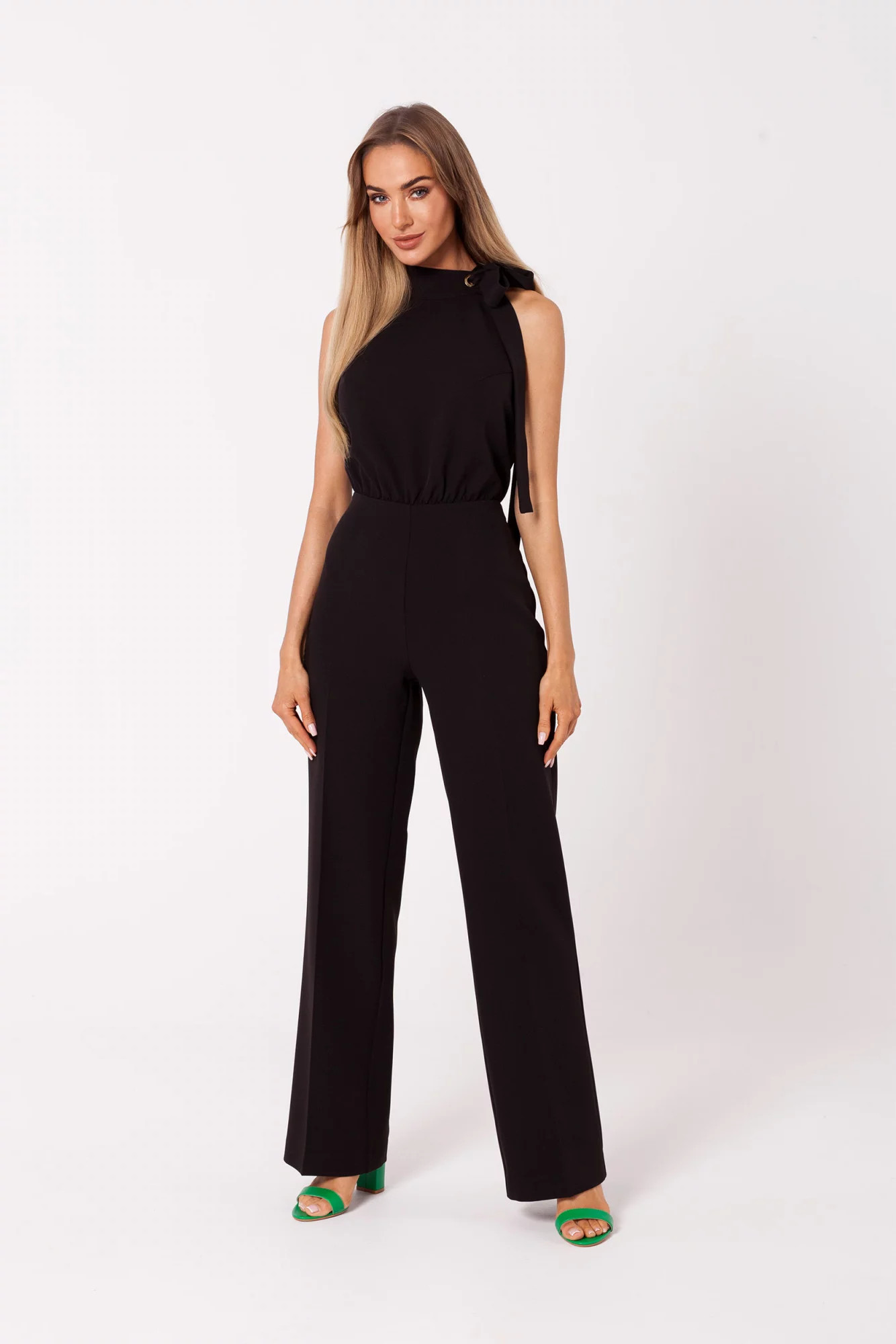 Tento lichotivý overal má ramienkový výstrih a detail zaväzovania. 95% polyester 5% elastan Pohlavie: Dámske Kolekcia: Jar/Leto/Jeseň/Zima Pokyny na údržbu Farba: čierna Kategória: Dámske oblečenie | Kombinézy