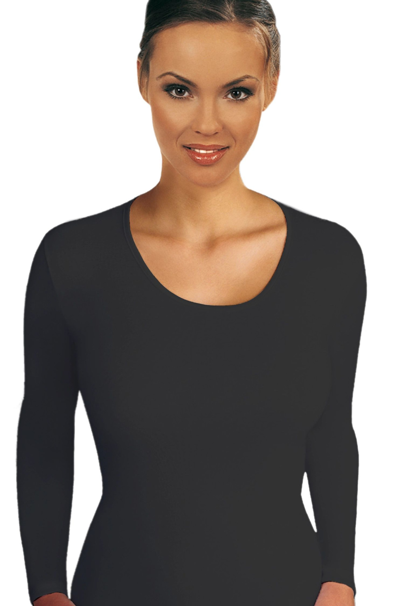 Dámska košieľka Emili black plus EMILI - čierna farba - vyrobená z kvalitnej bavlny - dlhé rukávy - bez švov - ideálna pod priliehavé oblečenie Zloženie materiálu: 100% bavlna