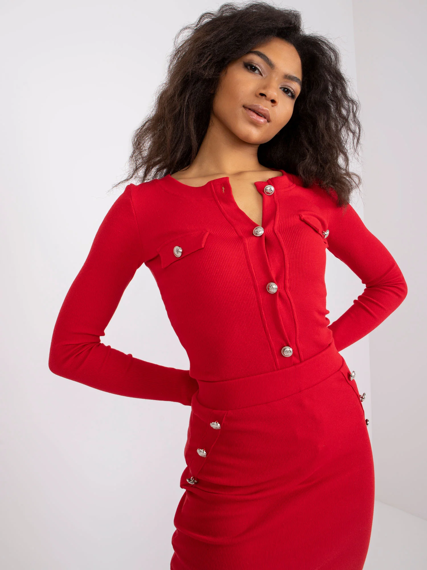 typ tkaniny: rebrovaná sada obsahuje: blúzku, sukňu zloženie látky: 90% bavlna, 10% elastan spôsob prania: pranie v práčke na 30 °C Modelka má na sebe veľkosť S. Rozmery modelky: výška 174 cm, prsia 83 cm, pás 62 cm, boky 91 cm. Rozmery súpravy vo veľkosti S merané na plocho: šírka v podpazuší - 33 cm, dĺžka blúzky - 61 cm, dĺžka rukávov - 60 cm, šírka v páse - 31 cm, dĺžka sukne - 69 cm.Veľkosť Alt.Výška Obvod hrudníka hrudník Externé. dĺžka. rukáv Vnútorné. dĺžka rukávov S 36 160-164 82 59 49 M 38 162-172 86 61 51 L 40 164-174 91 63 53