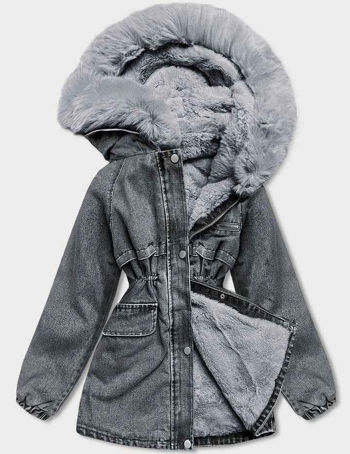 Čierna/sivá dámska džínsová bunda s kožušinovou podšívkou (br8048-109) odstíny černé XL (42)