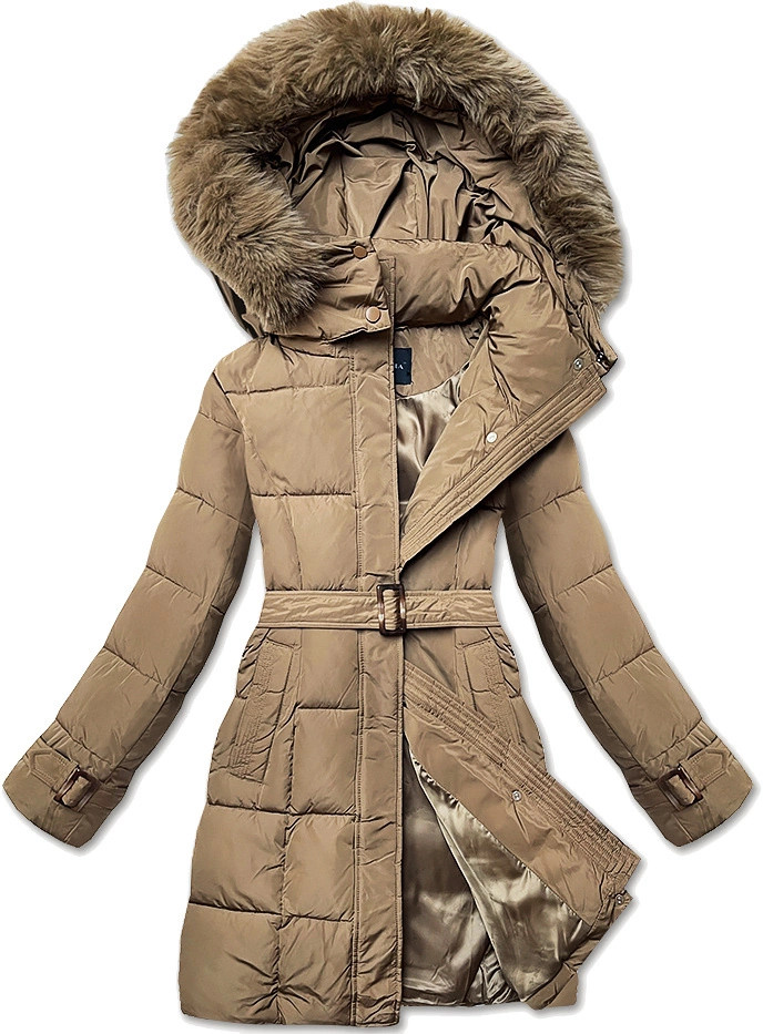 Pri výbere veľkosti venujte pozornosť nižšie uvedenej veľkostnej tabuľke. Veľkosti nezodpovedajú bežne nosenému oblečeniu. Bunda s kapucňou, ktorú možno odopnúť Bunda má priliehavý strih, je zateplená vrstvou syntetickej páperovej výplne, má dve vrecká bez zapínania a zapína sa na zips a panel s patentkami. Kapucňa je podšitá kožušinou, ktorú možno odopnúť. Na koncoch rukávov sú skryté gumičky. V páse a na koncoch rukávov sú pásy. Model je dlhý do polovice stehien. Zloženie: 100 % polyester.