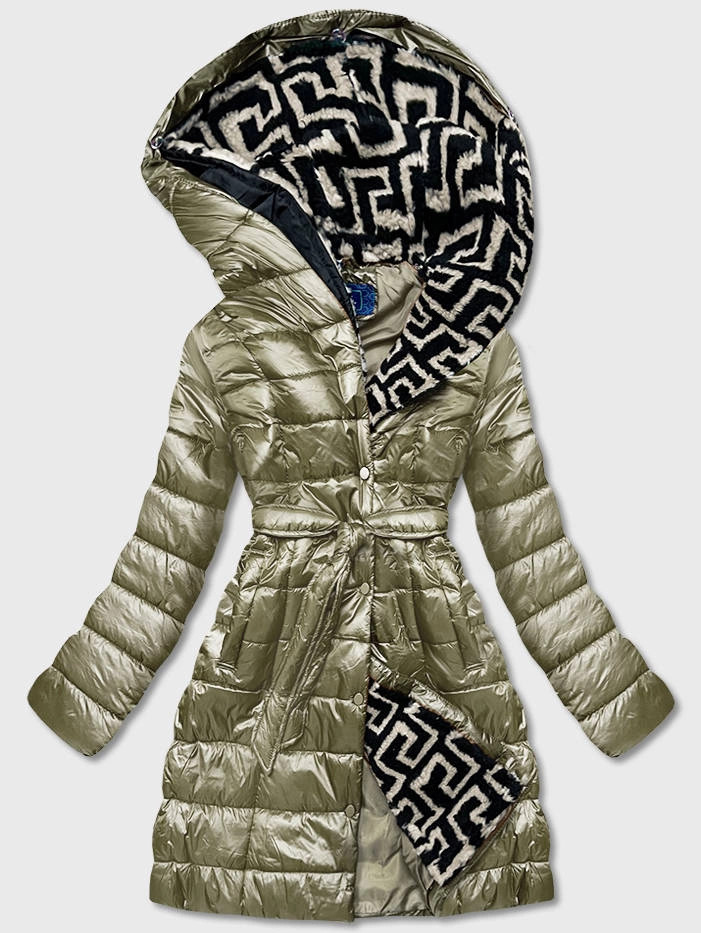 Dámska ľahká zimná bunda v khaki farbe so zateplenou kapucňou (omdl-019) odstíny zelené M (38)