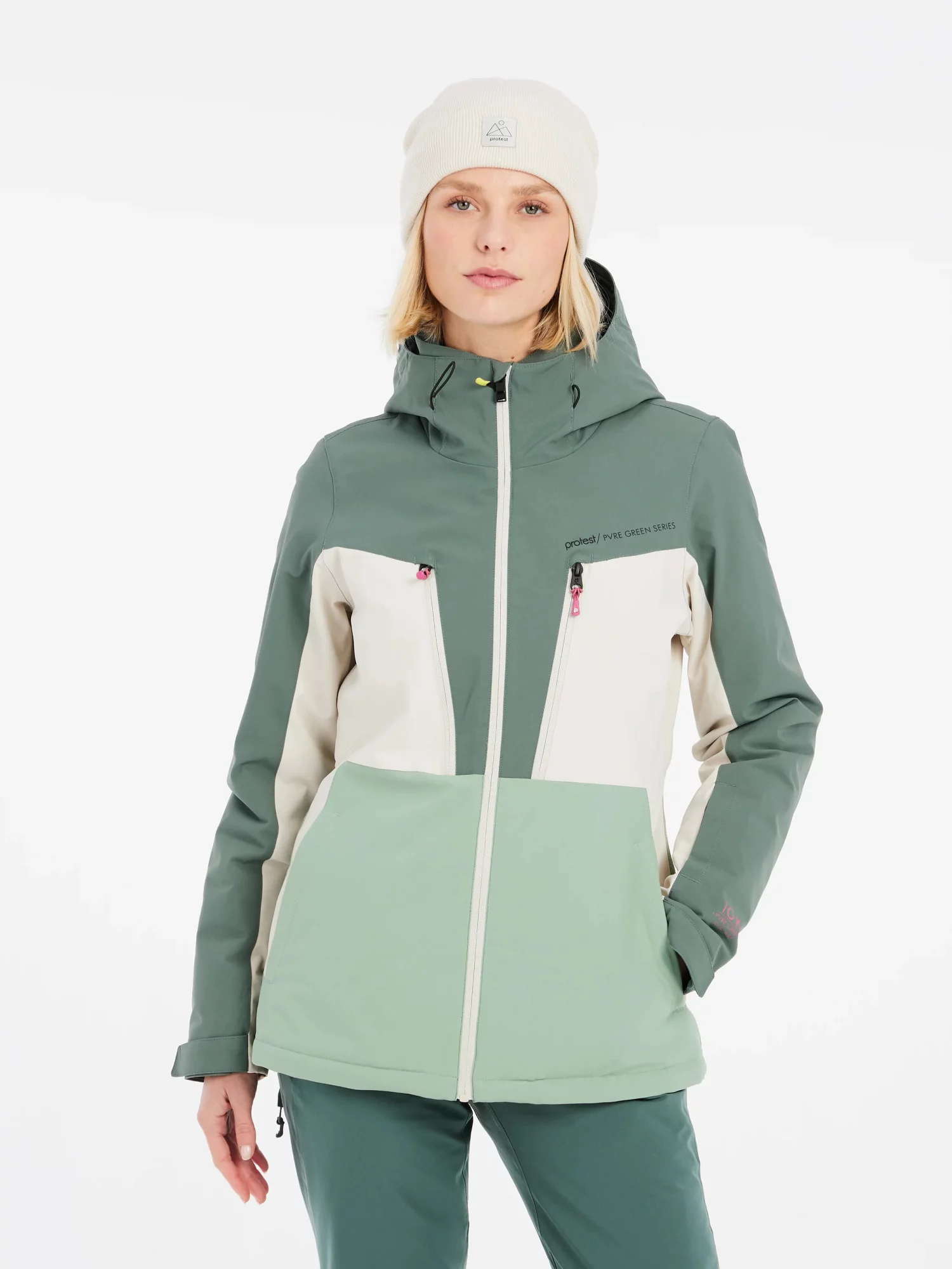 Lyžiarska a snowboardová bunda PRTCALIDA od spoločnosti Protest je úplným hitom. Vďaka elegantnému trojfarebnému dizajnu je PRTCALIDA nadčasová bunda, ktorá ponúka aj skvelé funkčné vlastnosti a udržateľnosť. Je súčasťou našej série PVRE Green, čo znamená, že je vyrobená z recyklovaných materiálov a má povrchovú úpravu bez PFC s 10K vodoodpudivou vrstvou. Vďaka priedušnosti 10g, vetracím zipsom v podpazuší, kriticky podlepeným švom, vnútornej lége, pevnej kapucni, manžetám na suchý zips a manžetám v páse vás bunda PRTCALIDA udrží v teple a suchu na mnohých úrovniach. Táto bunda má skrátený strih a pravidelnú dĺžku. Má predné vrecko, náprsné vrecko na zips a praktické vrecká na skipas a okuliare! Bunda PRTCALIDA je túto zimu vaším ideálnym spoločníkom na svahoch.
