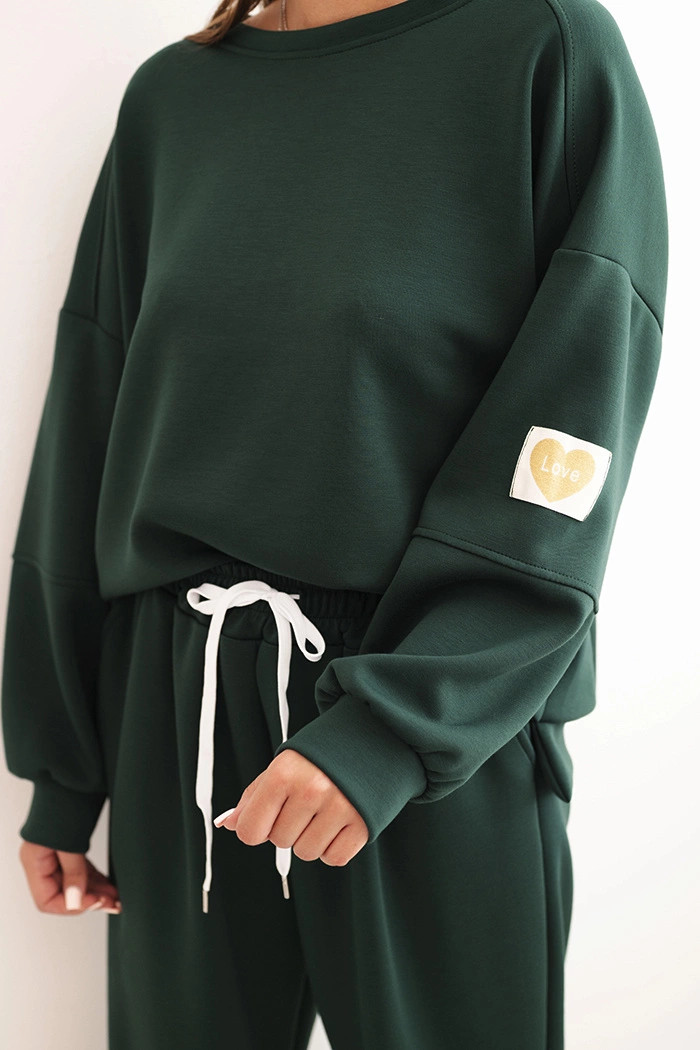 Dámska maslová súprava s voľnou mikinou a nohavicami s nápisom LOVE tmavozelená UNI