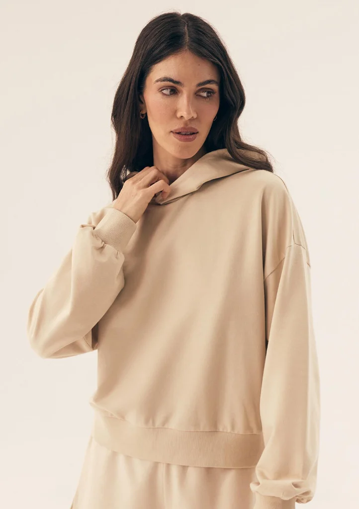 Pohodlie a štýl v jednom - presne to ponúka táto dámska mikina od značky ESOTIQ. V jemnom béžovom odtieni pôsobí elegantne a ľahko sa kombinuje s akýmkoľvek oblečením. Mikina má pohodlnú kapucňu, ktorá vám poskytne príjemné zázemie počas chladnejších dní. Voľnejší strih s mierne spadnutými ramenami a rebrovanými lemami na rukávoch a spodnom okraji zaručuje moderný vzhľad a pohodlné nosenie. Vďaka mäkkému a príjemnému materiálu si budete užívať pohodlie nielen doma, ale aj pri prechádzkach vonku. Minimalistický dizajn bez zbytočných detailov robí z tejto mikiny univerzálny kúsok, ktorý by nemal chýbať v žiadnom šatníku. Materiál: 60 % bavlna, 40 % polyester.