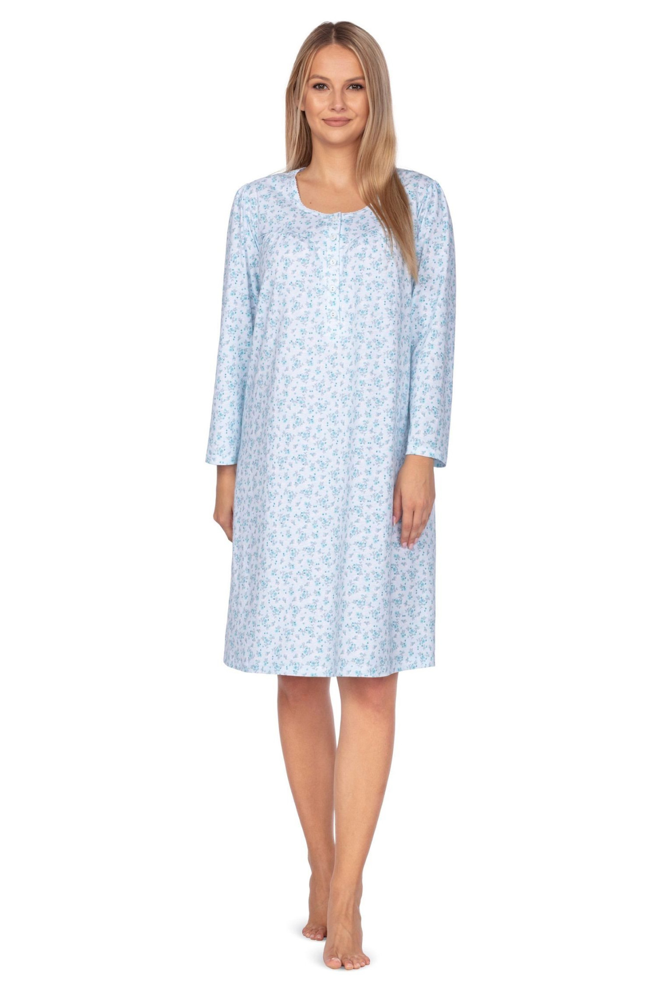 Nočná košeľa 007 modrá REGINA - svetlomodrá - vyrobená z kvalitnej bavlny - vzorovaná - dlhé rukávy - výstrih na gombíky Zloženie materiálu: 100% bavlna Veľkosti pre ženy S M L XL 2XL 3XL 4XL Obvod hrudníka (cm) 84 cm 90cm 96cm 102cm 108cm 116cm 124cm Obvod bokov (cm) 91cm 96cm 102cm 107cm 113cm 120cm 128cm Výška (cm) 160cm 164cm 168cm 168cm 164cm 164cm 164cm Veľkosti pre mužov M L XL 2XL 3XL Obvod hrudníka (cm) 100 cm 104cm 108cm 112cm 122cm Obvod bokov (cm) 90cm 94cm 98cm 104cm 114cm Výška (cm) 172cm 178cm 182cm 184cm 184cm