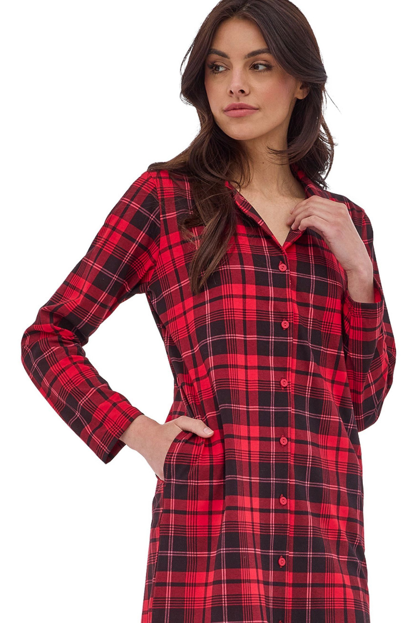 Dámska nočná košeľa 104/409 Kaya 2 CORNETTE - červená - vyrobená z kvalitnej bavlny - golier - dlhé rukávy - zapínanie na gombíky - vrecká na bokoch - zaoblený lem Zloženie materiálu: 100% bavlna Veľkosti pre mužov S M L XL XXL 3XL 4XL 5XL Obvod hrudníka (cm) 92-96 cm 96-100cm 100-104cm 104-108cm 108-112cm 112-116cm 116-122cm 122-128cm Obvod pása (cm) 82-86cm 86-90cm 90-94cm 94-98cm 98-102cm 102-106cm 106-112cm 112-118cm Výška (cm) 164-170cm 170-176cm 176-182cm 182-188cm 188-194cm 188-194cm 188-194cm 188-194cm Veľkosti pre ženy S M L XL XXL 3XL 4XL 5XL Obvod hrudníka (cm) 88-92 cm 92-96cm 96-100cm 100-104cm 104-108cm 108-112cm 112-118cm 118-124cm Obvod pása (cm) 72-76cm 76-80cm 80-84cm 84-88cm 88-92cm 92-96cm 96-102cm 102-108cm Obvod bokov (cm) 92-96cm 96-100cm 100-104cm 104-108cm 108-112cm 112-116cm 116-122cm 122-128cm Výška (cm) 158-164cm 164-170cm 164-170cm 170-176cm 176-182cm 176-182cm 176-182cm 176-182cm Detské veľkosti (roky) 2-3 3-4 5-6 7-8 9-10 11-12 13-14 Obvod hrudníka (cm) 50-54 cm 54-58cm 58-62cm 62-66cm 66-72cm 72-80cm 80-88cm Obvod pása (cm) 48-52cm 50-54cm 52-56cm 54-58cm 56-62cm 60-68cm 64-72cm Výška (cm) 86-92cm 98-104cm 110-116cm 122-128cm 134-140cm 146-152cm 158-164cm