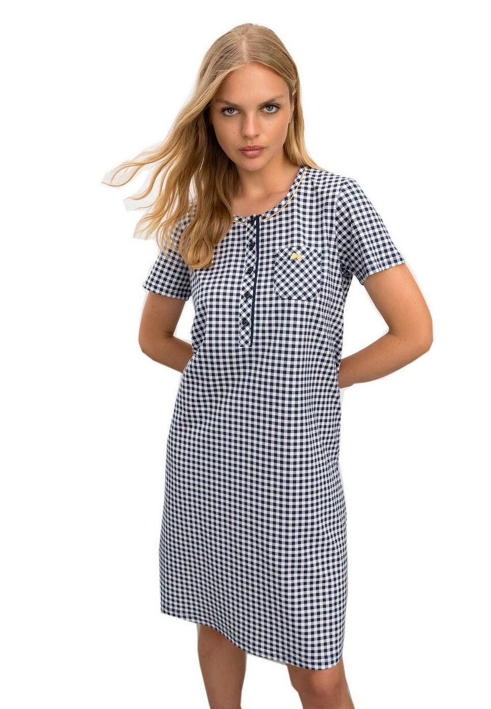 Dámska nočná košeľa 16215-183 Tmavomodrá s bielou - Vamp M modrá kostka