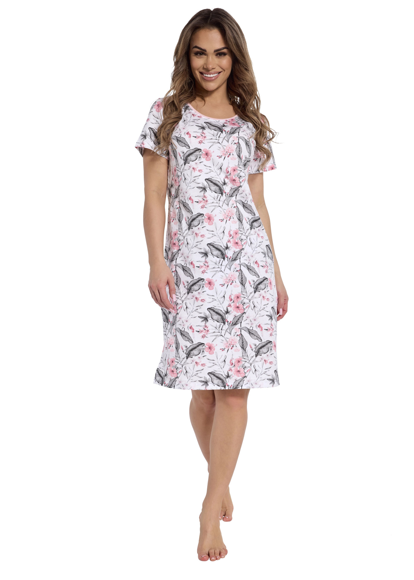 Dámska nočná košeľa 799/314 Vivian2 CORNETTE - biela - z kvalitnej bavlny - s kvetinovým vzorom - krátke rukávy - kontrastné lemovanieZloženie materiálu: 100% bavlna Veľkosti pre mužov S M L XL XXL 3XL 4XL 5XL Obvod hrudníka (cm) 92-96 cm 96-100cm 100-104cm 104-108cm 108-112cm 112-116cm 116-122cm 122-128cm Obvod pása (cm) 82-86cm 86-90cm 90-94cm 94-98cm 98-102cm 102-106cm 106-112cm 112-118cm Výška (cm) 164-170cm 170-176cm 176-182cm 182-188cm 188-194cm 188-194cm 188-194cm 188-194cm Veľkosti pre ženy S M L XL XXL 3XL 4XL 5XL Obvod hrudníka (cm) 88-92 cm 92-96cm 96-100cm 100-104cm 104-108cm 108-112cm 112-118cm 118-124cm Obvod pása (cm) 72-76cm 76-80cm 80-84cm 84-88cm 88-92cm 92-96cm 96-102cm 102-108cm Obvod bokov (cm) 92-96cm 96-100cm 100-104cm 104-108cm 108-112cm 112-116cm 116-122cm 122-128cm Výška (cm) 158-164cm 164-170cm 164-170cm 170-176cm 176-182cm 176-182cm 176-182cm 176-182cm Detské veľkosti (roky) 2-3 3-4 5-6 7-8 9-10 11-12 13-14 Obvod hrudníka (cm) 50-54 cm 54-58cm 58-62cm 62-66cm 66-72cm 72-80cm 80-88cm Obvod pása (cm) 48-52cm 50-54cm 52-56cm 54-58cm 56-62cm 60-68cm 64-72cm Výška (cm) 86-92cm 98-104cm 110-116cm 122-128cm 134-140cm 146-152cm 158-164cm