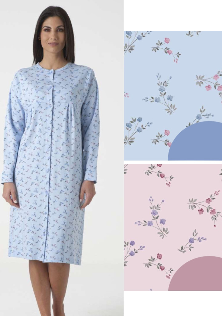 Dámska nočná košeľa od talianskej značky Karelpiu. Nočná košeľa s dlhým rukávom má dĺžku pod kolená. Zapína sa na gombíky. Nočná košeľa je zo 100% silnejšej bavlny, veľmi jemná, preto sa v nej budete cítiť veľmi príjemne aj v zimných mesiacoch.Materiálové zloženie: 100% bavlna.