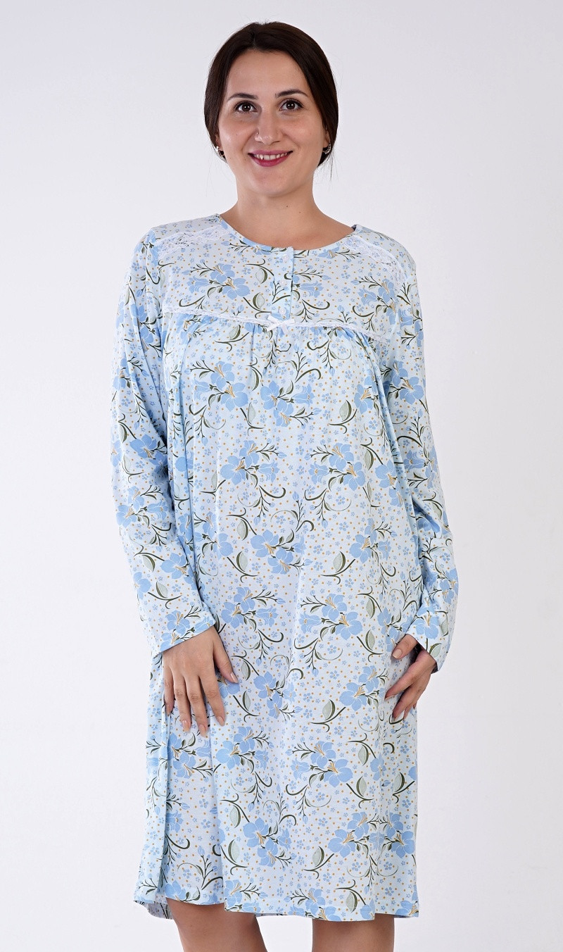 Dámská bavlněná noční košile s dlouhým rukávem Estela. Klasická dámská noční košile pro všechny milovnice starých časů a pohodlí v příjemné délce do půli lýtek. Látka košile je potištěna květy, ozvláštněna krajkou a krátkou légou se třemi knoflíčky. Použitý materiál s podílem bavlny 100% je příjemný a poddajný na dotek. Pokyny pro údržbu: - 100% bavlna - lze prát v pračce při teplotě do 30° - nesušit v sušičce - žehlit z rubu do 110° - nepoužívat bělící prostředky - nečistit chemicky Míry naměřené na výrobku: 1613730855 Estela 1XL 2XL 3XL 4XL obvod hrudníku 122 128 134 140 obvod boky 142 148 152 160 délka 105 105 105 105