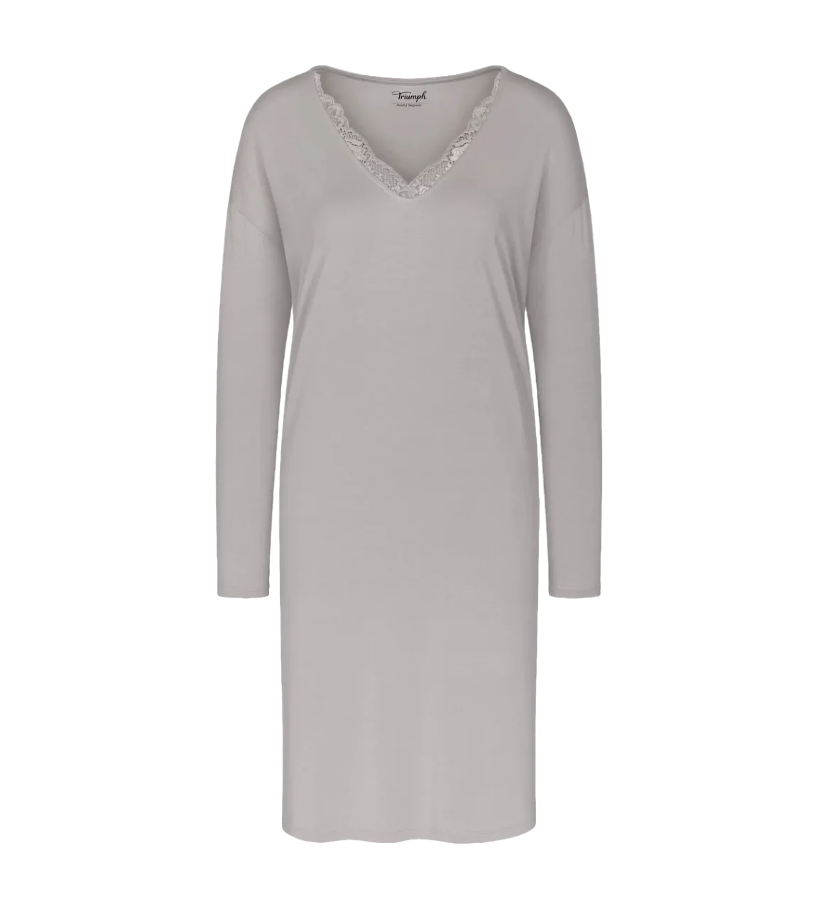 Oddýchnite si na konci dňa v elegantnej nočnej košeli, ktorá vyzdvihuje vaše tvary. Nechajte sa viesť mäkkou a priedušnou tkaninou do pohodlného a luxusného spánku. Nočná košeľa s dlhými rukávmi v pohodlnom a lichotivom strihu v dĺžke nad kolená S ozdobnými čipkovanými časťami Mäkká na dotyk a priedušná Ľahko udržiavateľná tkanina, ktorá sa nemusí žehliť Vyrobená z 94 % modalu TENCEL™ OEKO-TEX® STANDARD 100, 93.0.3130 Hohenstein HTTI Zloženie materiálu: 94 % modalové viskózové vlákno, 6 % elastan