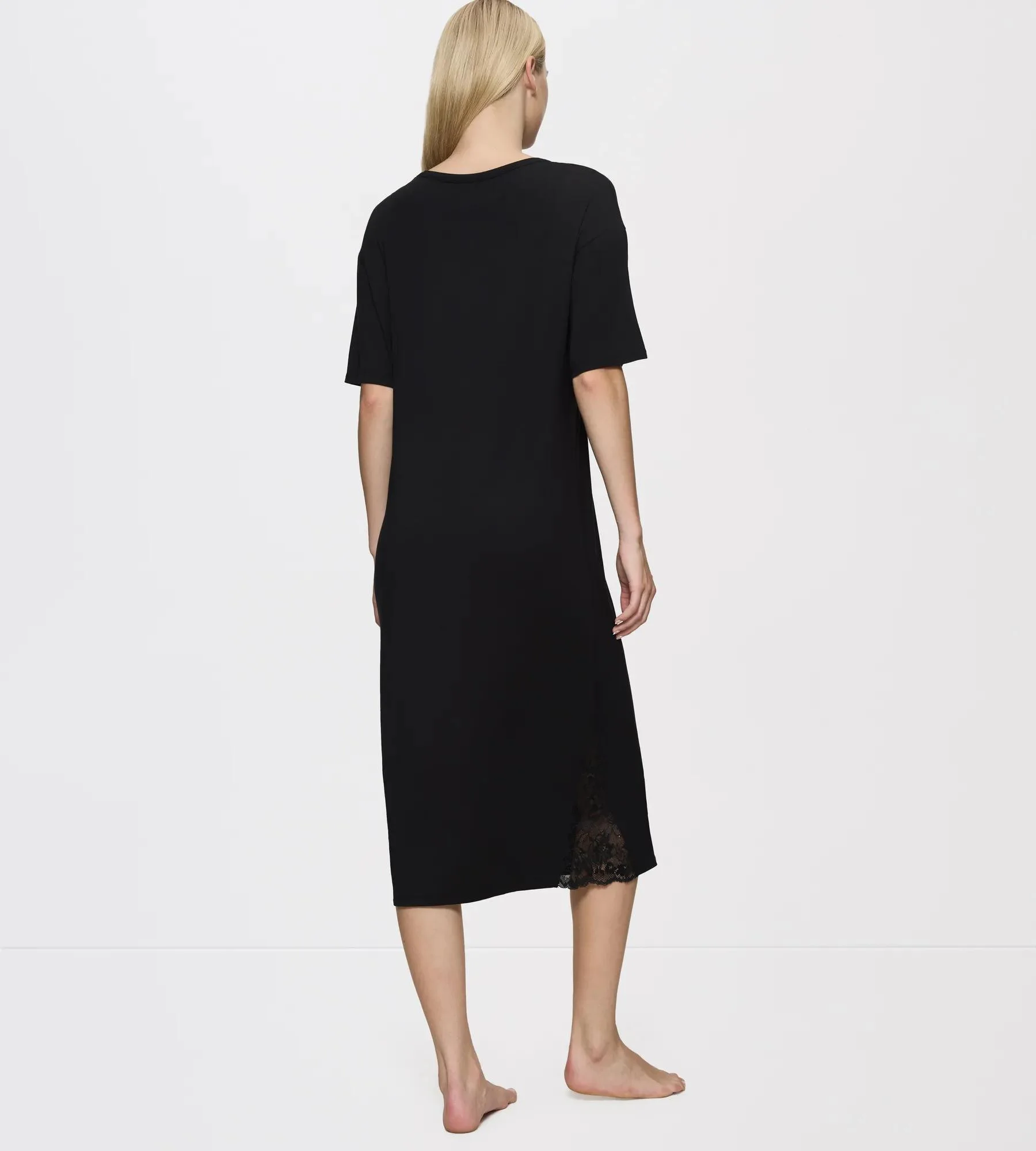 V tejto nočnej košeli s krátkymi rukávmi sa vám bude sladko spať. Nechajte mäkkú tkaninu lichotivého strihu košele pohladiť vašu pokožku a uvoľniť sa. Nočná košeľa s krátkymi rukávmi v pohodlnom a lichotivom strihu s dĺžkou po členky Moderný výstrih a súčasný dizajn z nej robia všestranný kúsok na doma aj na cesty S ozdobnými čipkovanými časťami Jemná na dotyk a priedušná Ľahko udržiavateľná tkanina, ktorá sa nemusí žehliť Vyrobené z 94 % modalu značky TENCEL™ OEKO-TEX® STANDARD 100, 93.0.3130 Hohenstein HTTI Zloženie materiálu: 94 % modalové viskózové vlákno, 6 % elastan