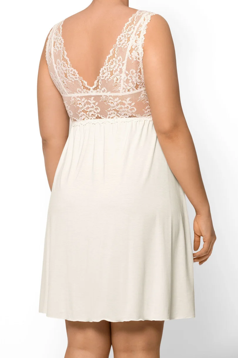 Dámska nočná košieľka, ktorá je vyrobená z viskózy (70%) s prídavkom pružných priadzí. V hornej línii modelu a pod poprsím je ažúrová čipka. V mieste spojenia košíčkov je saténová mašlička. Poprsie je ľahko vystužené. Dĺžku širokých ramienok nie je možné nastaviť.
