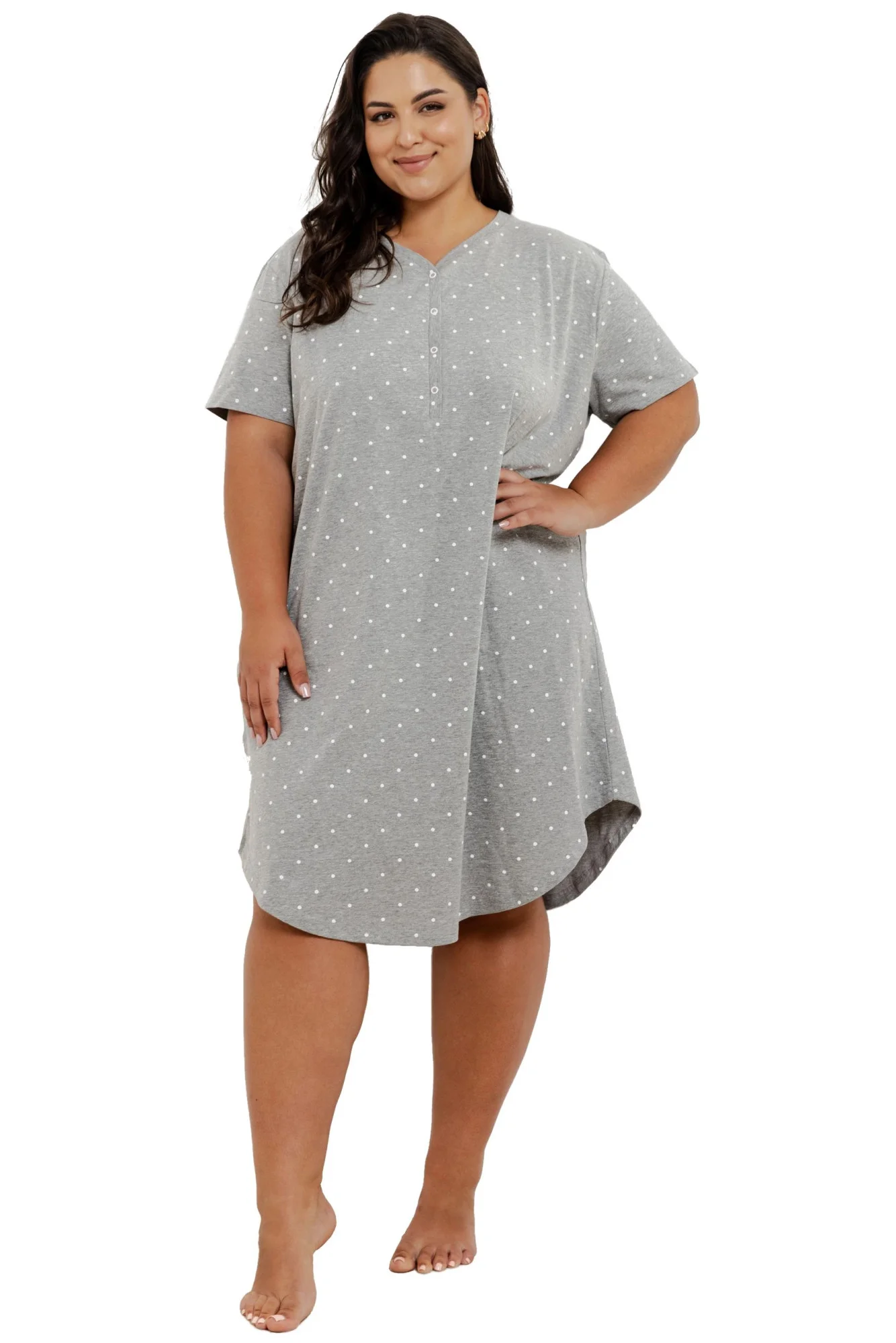 Dámska nočná košeľa 3367 Meg grey TARO - sivá - vyrobená z kvalitnej bavlny - zdobená čiernymi bodkami - výstrih do V so zapínaním na patentky - krátke rukávy Zloženie materiálu: 100% bavlna Veľkosti pre ženy S M L XL 2XL 3XL 4XL 5XL 6XL Obvod hrudníka (cm) 84-88 cm 90-94cm 96-100cm 102-106cm 110-114cm 116-120cm 124-128cm 130-134cm 136-140cm Obvod bokov (cm) 88-92cm 96-100cm 102-106cm 108-112cm 116-120cm 124-128cm 130-134cm 136-140cm 142-146cm Výška (cm) 158-164cm 164-170cm 164-170cm 170-176cm 170-176cm 170-176cm 170-176cm 170-176cm 170-176cm Veľkosti pre mužov S M L XL 2XL 3XL 4XL 5XL 6XL Obvod hrudníka (cm) 90-94 cm 92-96cm 100-104cm 108-112cm 116-120cm 124-128cm 132-136cm 140-144cm 148-152cm Obvod bokov (cm) 80-84cm 82-86cm 90-94cm 98-104cm 108-112cm 116-120cm 124-128cm 132-136cm 140-144cm Výška (cm) 164-170cm 170-174cm 180-182cm 184-186cm 184-186cm 176-182cm 176-182cm 176-182cm 176-182cm Veľkosti pre deti 92 98 104 110 116 122 128 134 140 Obvod hrudníka (cm) 56 cm 57cm 58cm 59cm 60cm 63cm 65cm 66-68cm 69-72cm Obvod bokov (cm) 58cm 60cm 62cm 64cm 66cm 68cm 70cm 72cm 74-75cm Výška (cm) 92cm 98cm 104cm 110cm 116cm 122cm 128cm 134cm 140cm